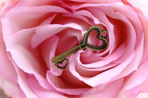 Rózsaszín rózsa szívhez szólóan mondja: “Bocsáss meg kérlek, a szívedet nyisd meg.”